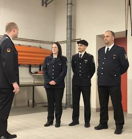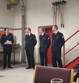 Jacqueline Schöbel, Tibor Dahl, Finn Ruch und Bendix Emsen wurden zum Oberfeuerwehrmann/-frau befördert.