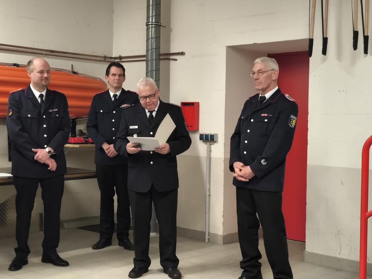 Im weiteren Verlauf der Versammlung richteten der Wehrführer Björn Zeuner, die Bürgermeisterin Martina Falkenberg, Ralf Kreutner (KFV), der Amtswehrführer Bernd Kreutner und der Polizeihauptkommissar Heiner Heermann ihre Grußworte an die Versammlung. Ebenfalls nahm Susanne Nowacki (Presse) teil.