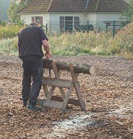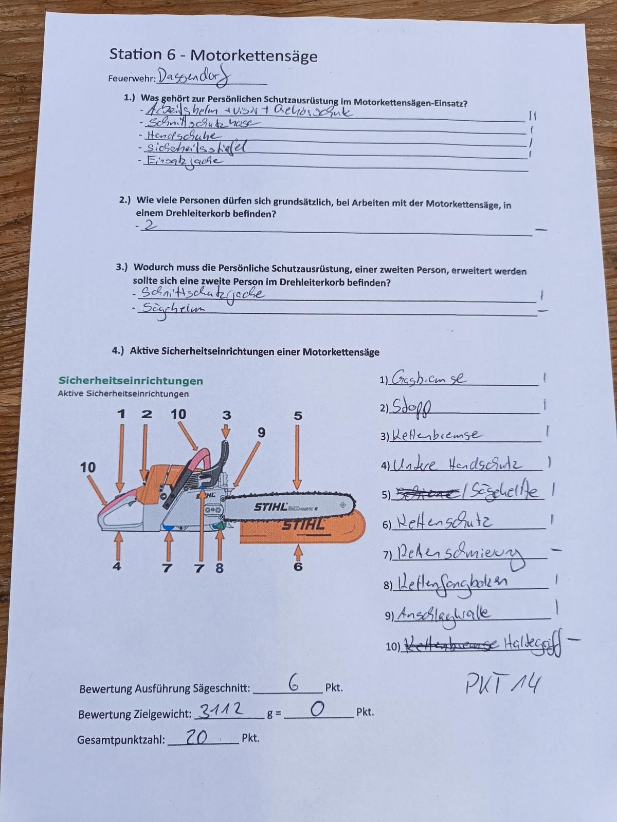 2) Motorsäge: Theorie MKS, PSA anziehen & 400g Stück absägen
