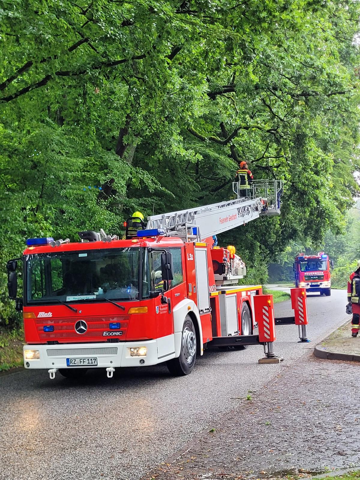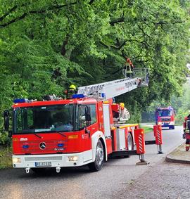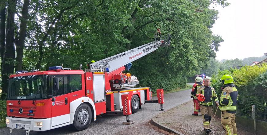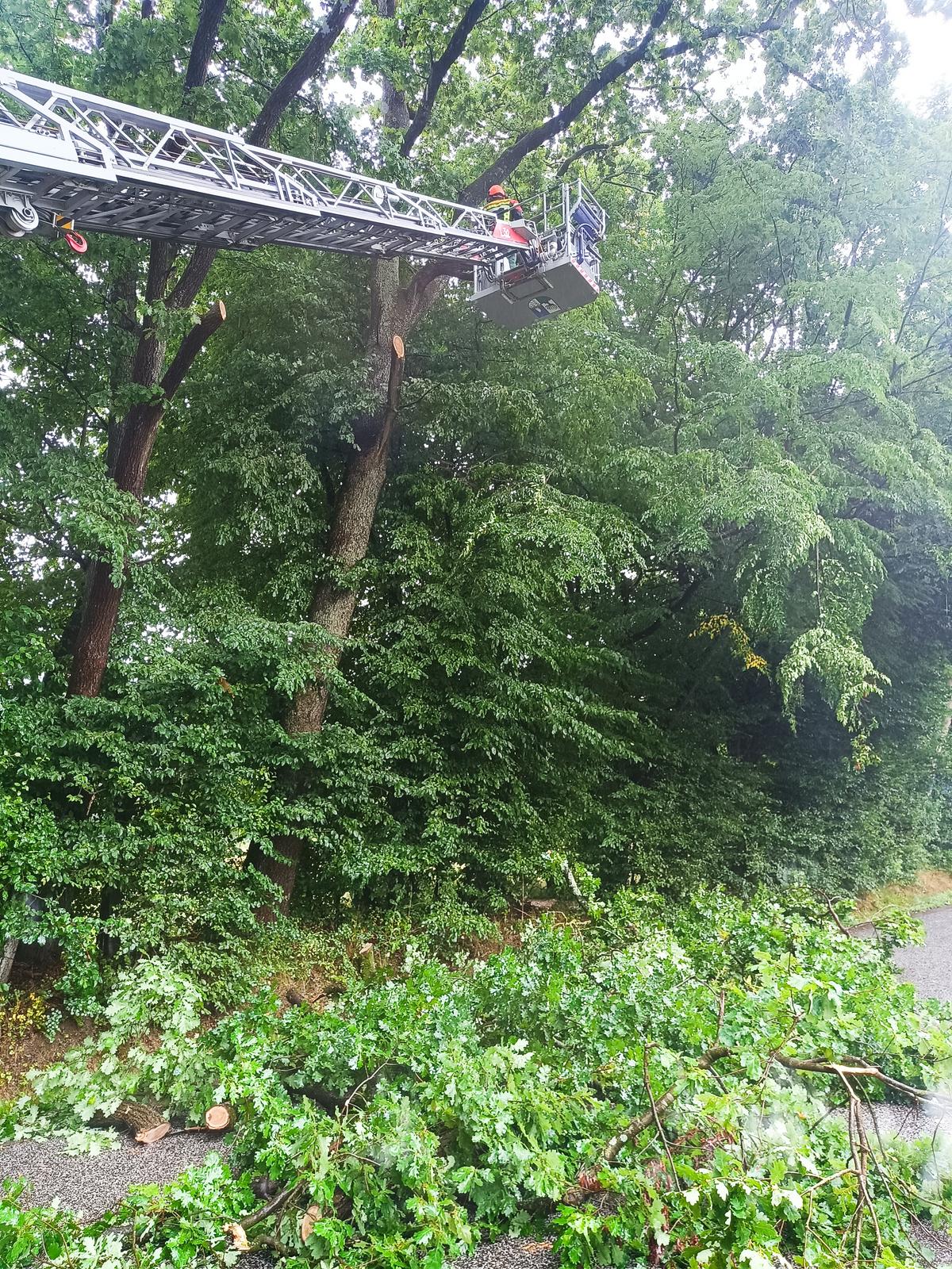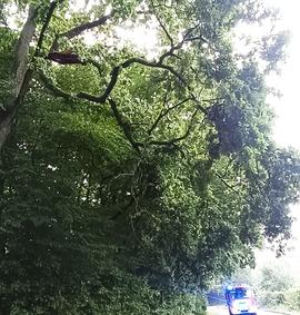Ein Anwohner des Kreuzhornweges hatte einen durch Sturmböen abgebrochen Ast einer Eiche gemeldet, der drohte auf die Straße zu fallen.