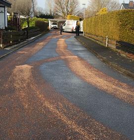 Dieselspur durch geplatzte Dieselleitung