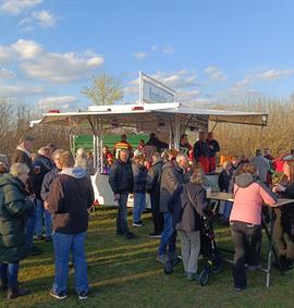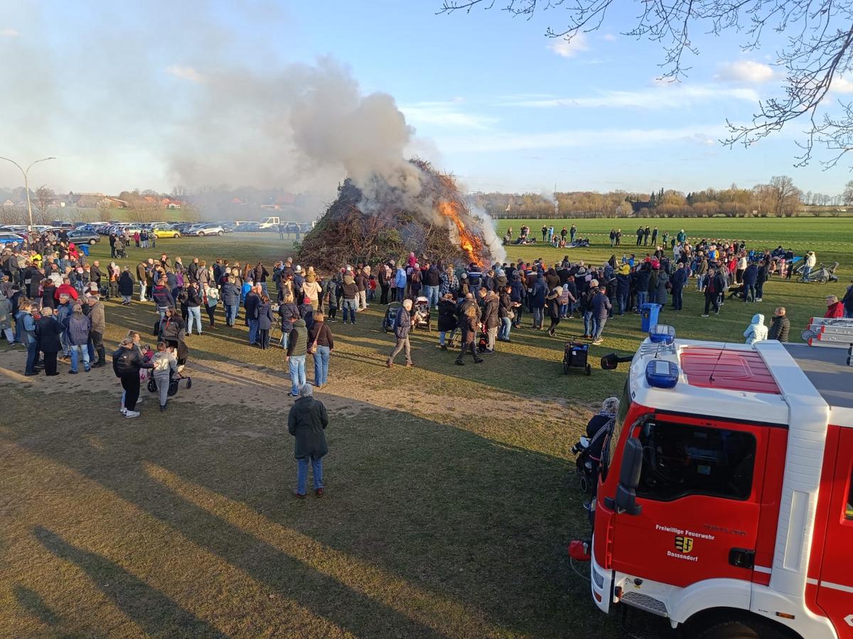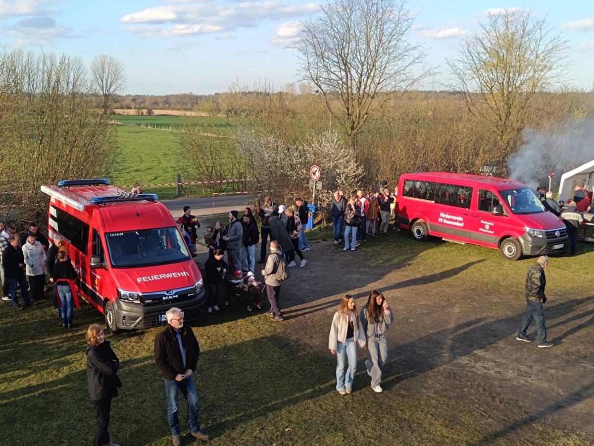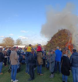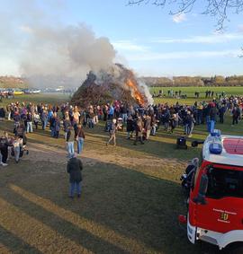 Auch in diesem Jahr sind wieder bis zu 1.000 Besucher auf den Festplatz am Bornweg zum Osterfeuer gekommen. Die Sicherheitswache verlief jedoch wiederholt ruhig, abgesehen von etwas Funkenflug durch das Osterfeuer. Auch bei den angemeldeten privaten Osterfeuern im Ortsgebiet verlief alles ruhig.