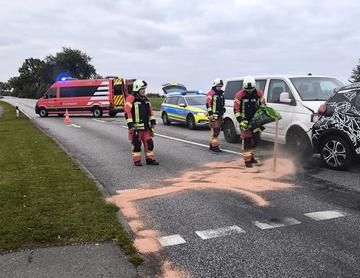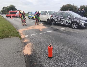 Alarmierung über POL, Öl läuft nach Auffahrunfall aus, keine Verletzten